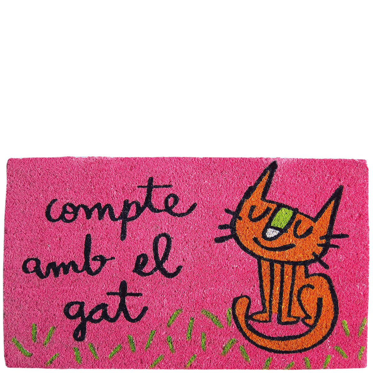 Paillasson "attention au chat" rose
