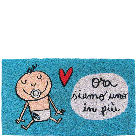 Paillasson "now we are one more" bleu