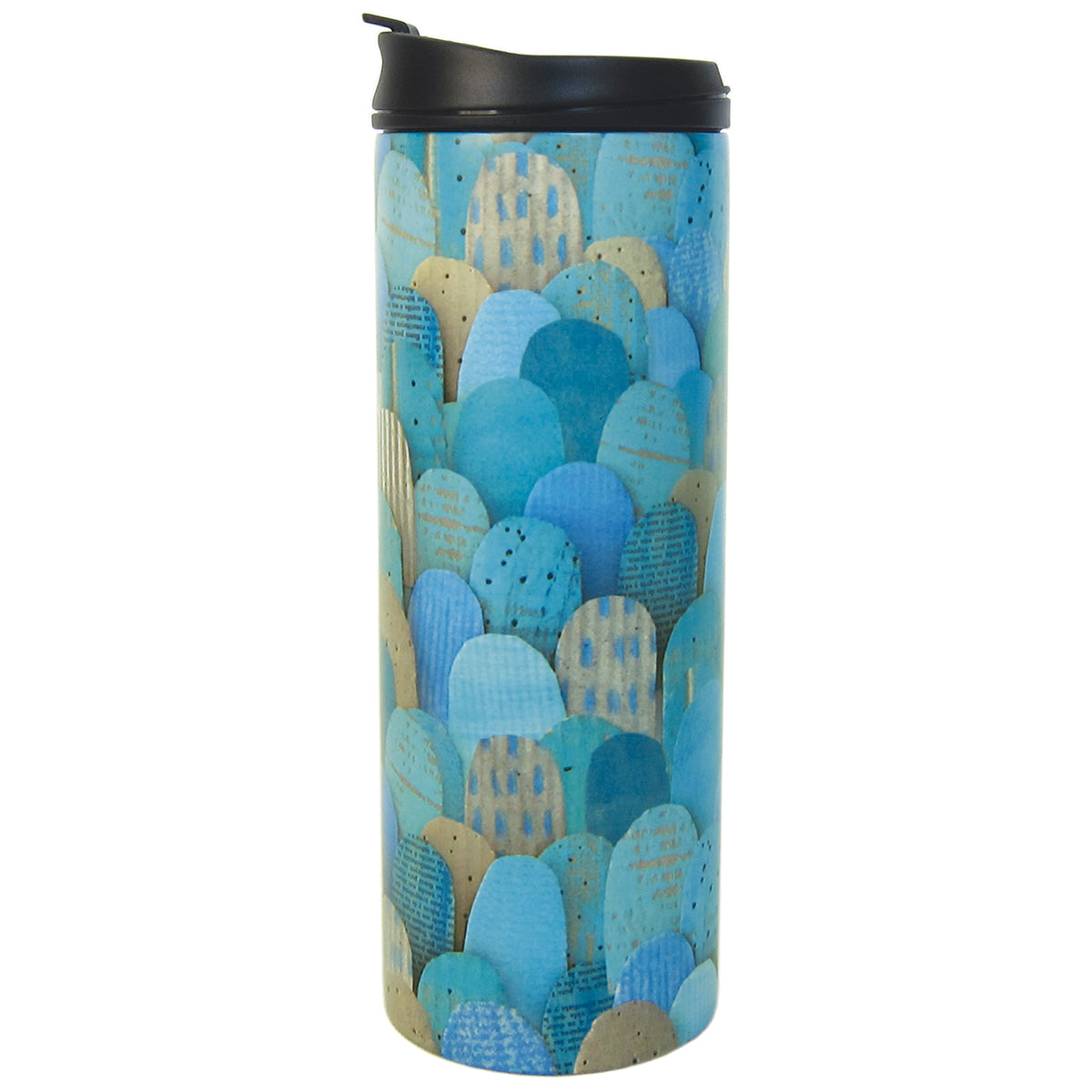 Flacon isotherme double paroi pour liquides 400ml. "montures turquoises" Inox & bouchon anti-goutte