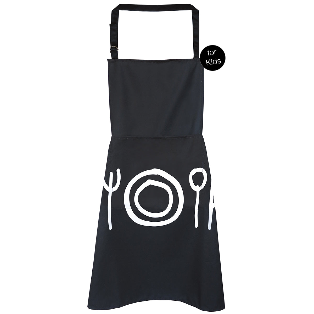 Tablier enfant "vaisselle & couverts" avec poche & hauteur réglable (3 à 9 ans)