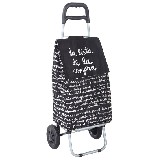 Pieghevole per essere un pacco piatto - Ruote ad alta resistenza - Base extra forte nella borsa per caricare lattine, bottiglie o simili - Tasca posteriore per chiavi e monete - Chiusura interna aggiuntiva - Tessuto ad alta resistenza, lavabile con un panno umido - Dimensioni : 35x28xH92cm