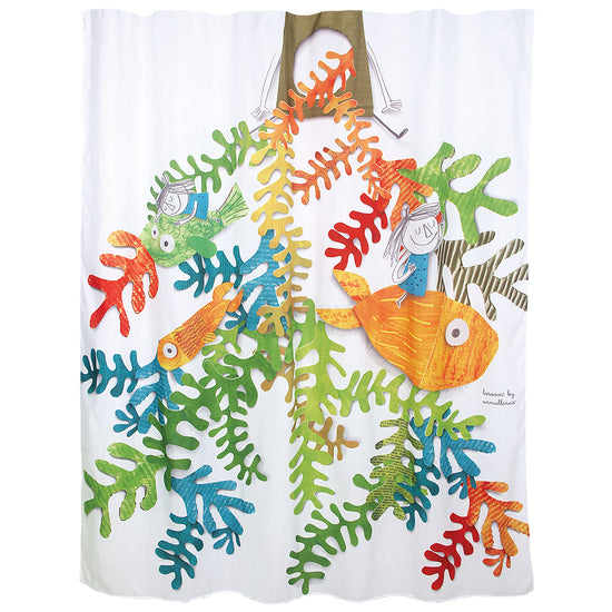 Bath curtain "marine universe" white polyester