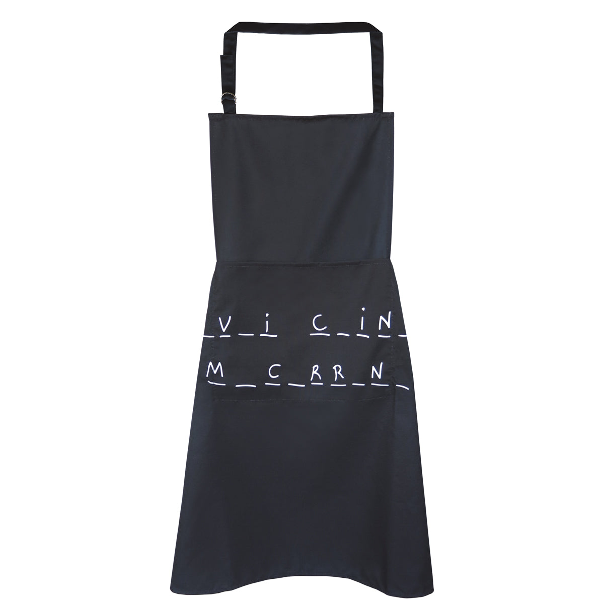 Kitchen apron "_V_I C_IN_ M_C_RR_N_" black with double pocket (main & cell phone) cloth hanger & adjustable height