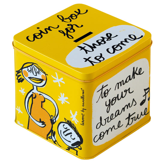 Metal coin box "for those to come" yellow